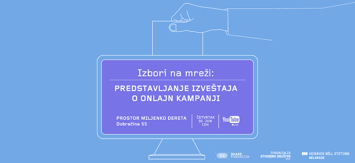 Izbori opet u fokusu – SHARE Fondacija kreće sa praćenjem izborne kampanje na internetu. Naš tim će pratiti političko oglašavanje na Fejsbuku, Tviter komunikaciju, sadržaj onlajn medija i beležiti povrede digitalnih prava i sloboda u kontekstu izborne trke. Više o tome šta vas uskoro očekuje u tekstu Anđele Milivojević. → SHARE Fondacija